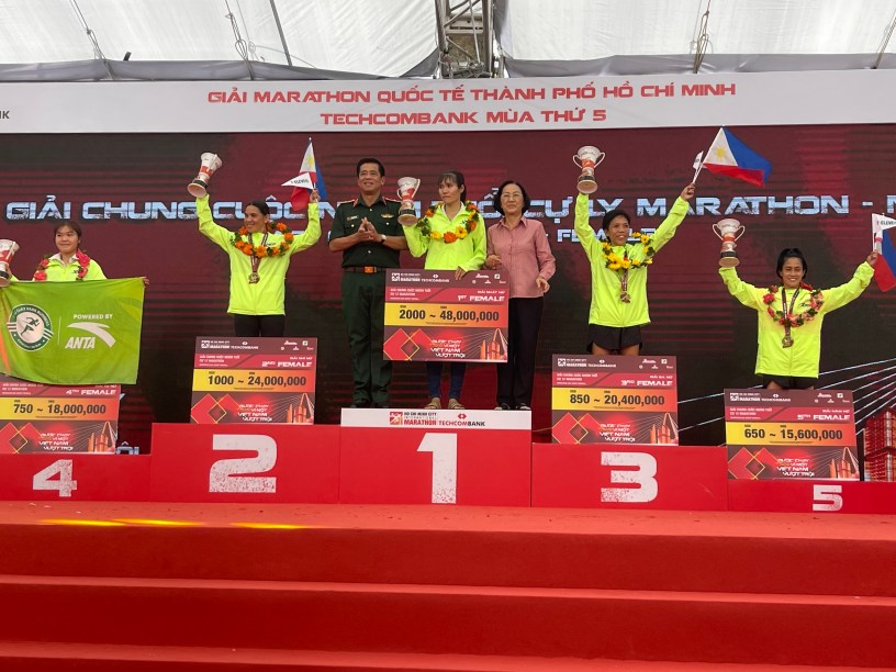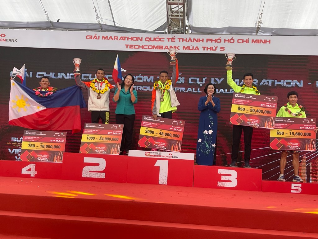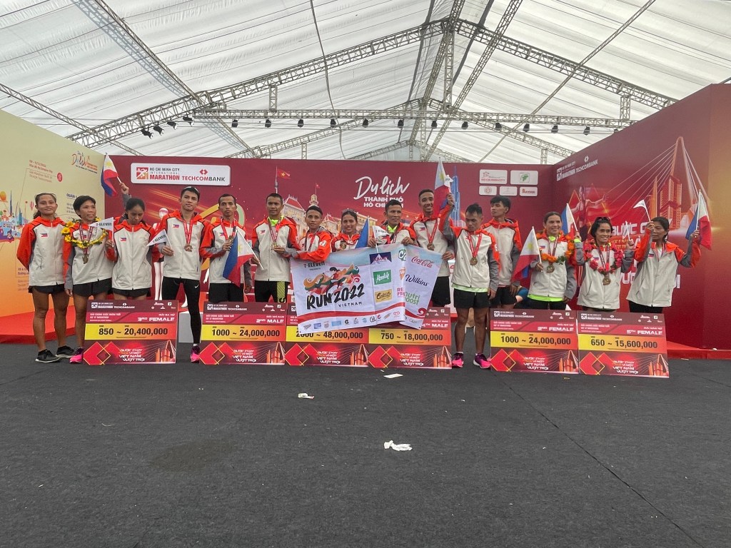 The participation of Filipino runners at the 5th Techcombank Ho Chi Minh City International Marathon was made possible through the efforts of Philippine Seven Corporation together with the valuable support of Anta as official sportswear partner, Selecta, Cornetto, Pocari Sweat, Del Monte Fit & Right, Nature Spring, Le Minerale, Kopiko Lucky Day, Cali, Pepsi, Gatorade, Mt. Dew, Summit, Absolute, Cobra, C2, Nova, Refresh, Coca Cola, Nutriboost, Wilkins, Smart, TV5, and One Sport.
