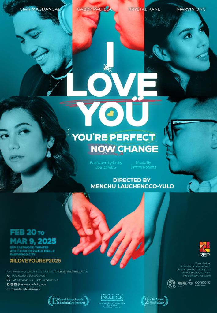 REP kicks off its 88th season with the return of I Love You, You’re Perfect, Now Change. Catch Gian Magdangal, Gabby Padilla, Krystal Kane, and Marvin Ong playing over 40 characters that explore the highs and lows of modern love.