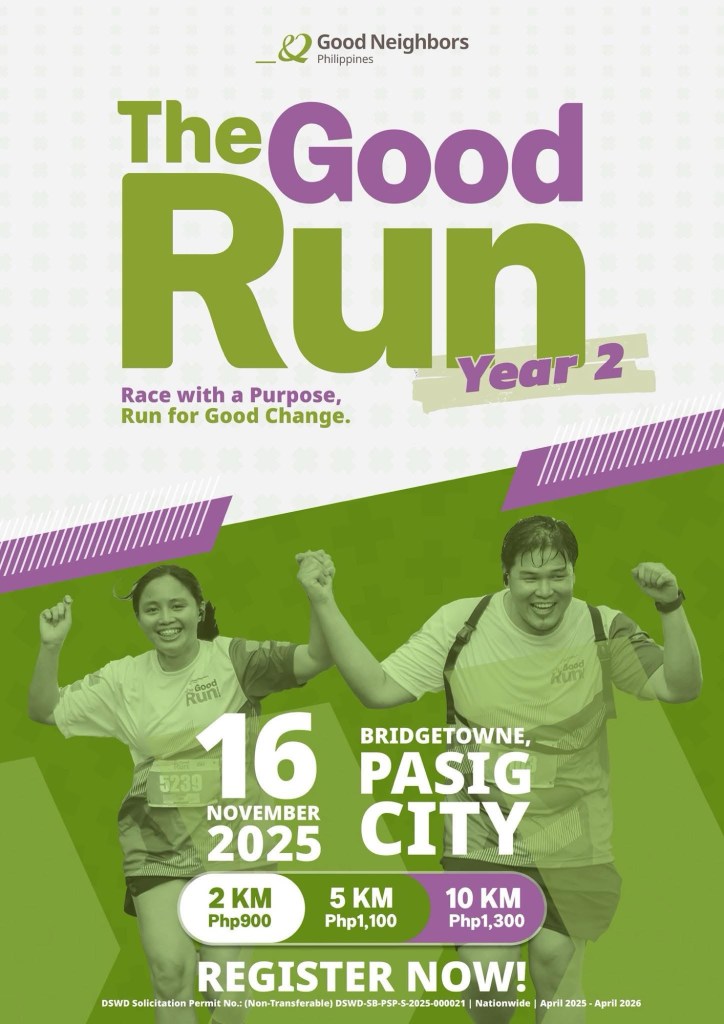 If you are looking for a meaningful race this year, this is it. You get the chance to improve your fitness, meet fellow runners, and contribute to the life-changing work of Good Neighbors Philippines. Sign up today and be part of a run that makes a difference.