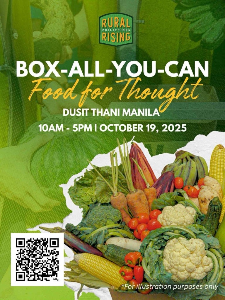 Join the Box All You Can challenge for ₱999 per box, where you have seven minutes to fill a 12” x 10” x 8” box with as much as you can. If you prefer, you can also donate your box. Every ₱999 donation provides 10 kilos of vegetables for the community kitchens in Cebu.
