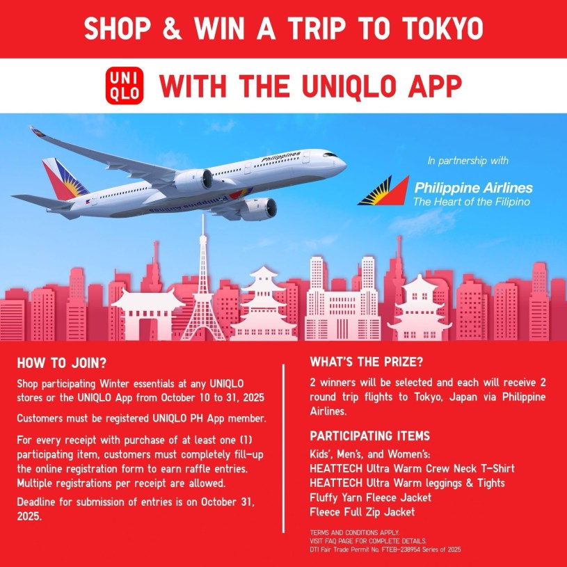 Get ready to travel in style this winter! UNIQLO Philippines is giving shoppers an amazing opportunity to win a FREE flight to Tokyo, Japan via Philippine Airlines when you shop their Winter Essentials Collection from October 10 to 31, 2025.