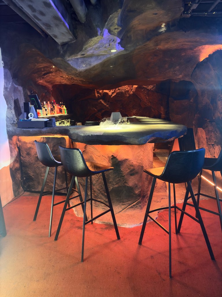By day, Mars CNX Café serves excellent specialty coffee in a futuristic, Mars-inspired setting. Picture metallic interiors, crater-like walls, and glowing red lights that make every corner look like a sci-fi film set. Signature drinks like the Black Hole (charcoal latte) and Dirty Mars (espresso over milk) are must-tries for anyone exploring the best cafés in Chiang Mai.