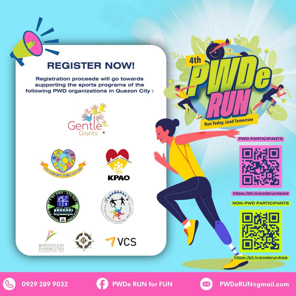 This event goes beyond personal fitness goals. It’s about standing with the PWD community and helping create more opportunities for persons with disabilities to enjoy sports, training, and teamwork. By joining, you’re supporting the programs of these dedicated organizations in Quezon City: Quezon City Gentle Giants Club, CWD Under Parents of Brgy. Holy Spirit, Kabahagi Parent Advocate Organization, Quezon City PWD ETS SLP Association, and Kaagapay ng may mga Kapansanan ng Brgy. Holy Spirit.