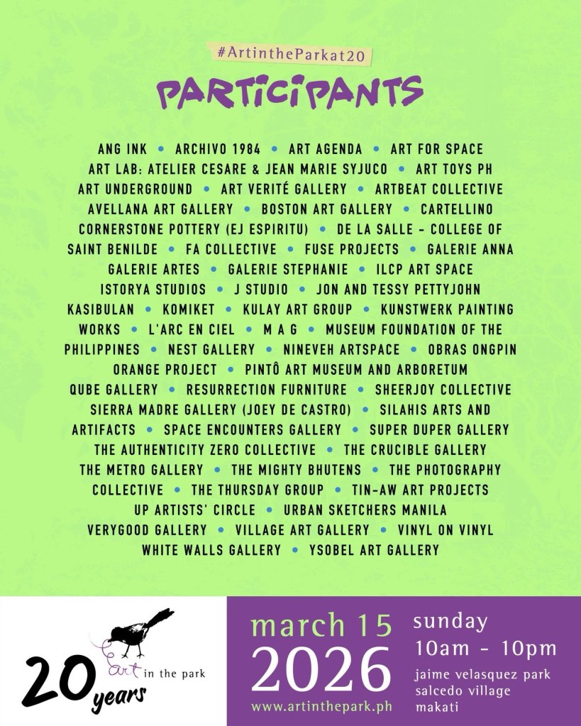 The much-anticipated Art in the Park 2026 returns for its 20th anniversary, bringing another vibrant celebration of Filipino contemporary art to Jaime Velasquez Park in Salcedo Village, Makati City. As one of the most established Makati art fairs, this milestone edition spotlights both returning headliners and exciting contemporary voices shaping the Philippine art scene today.